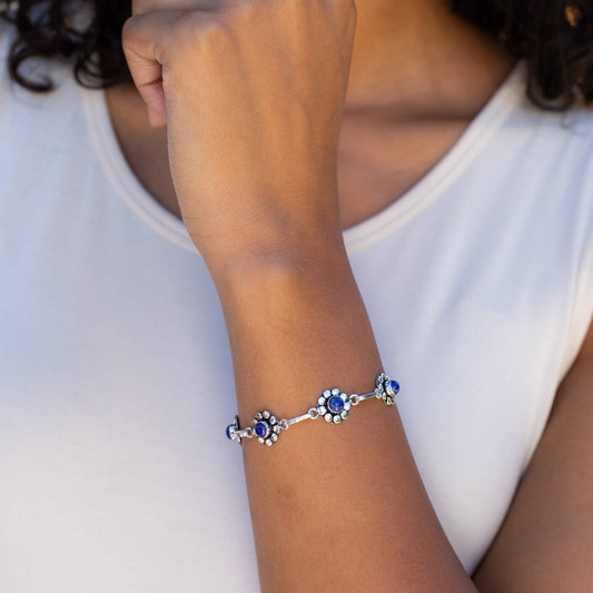 Tanvi Silver Link Bracelet - Lapis Daisies