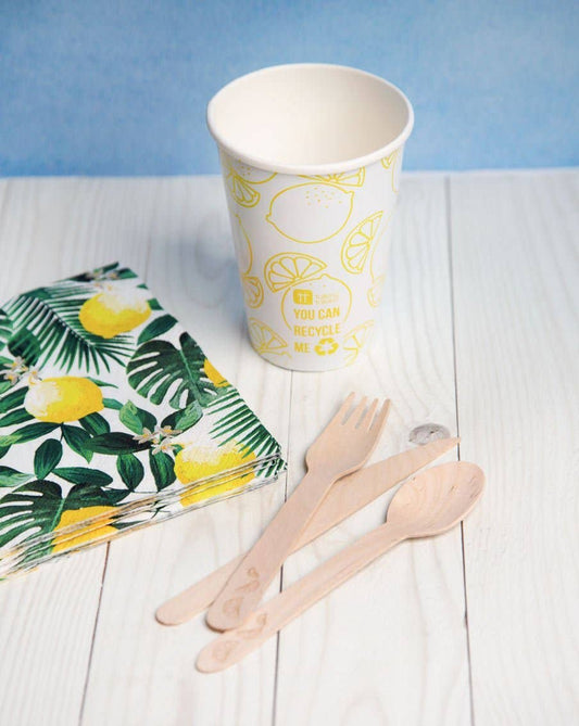 Wooden Eco Cutlery, Lemon Print - 6 Place Settings