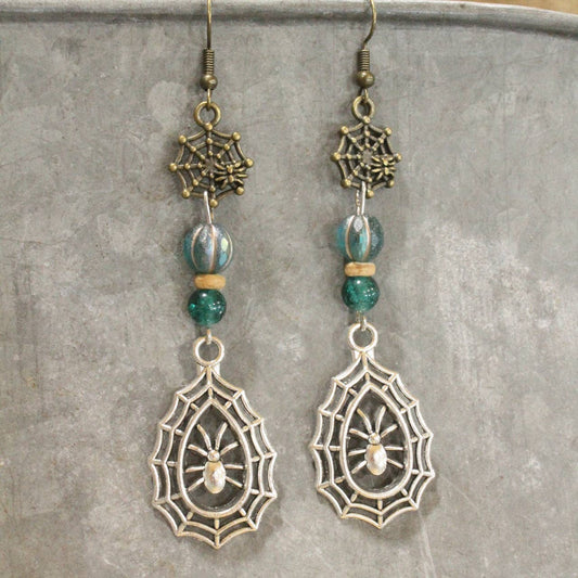 Chartreuse Floral Scrollwork Brass Patina Earrings
