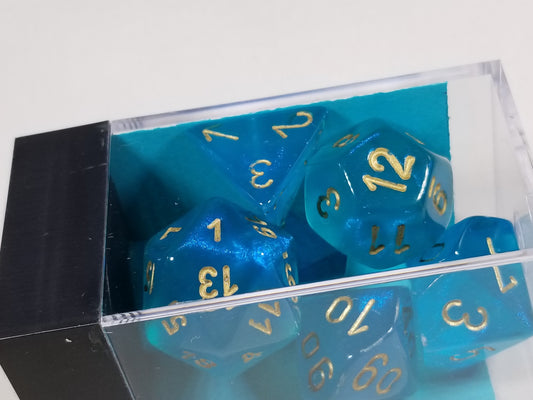 CHX 27486 Polyhedral 7-Die Borealis Teal w/ Gold Numbers Set Of 7 Dice Chessex
