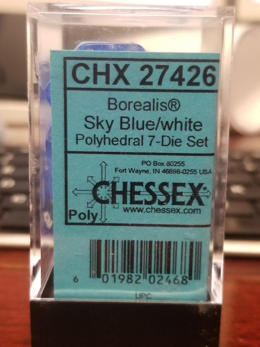 CHX 27426 7-Dice Set Sky Blue w/ White Numbers Dice Set Chessex