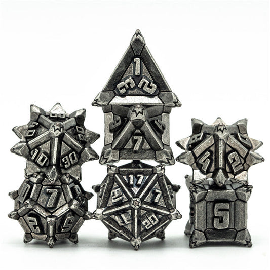 Vintage Silver Pinwheel Strengthened Metal 7-Dice Set | Metal DND Dice