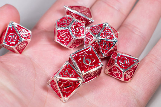 Defender 7-Dice Metal Set Silver w/ Red Fill {North Star Dice Collection}