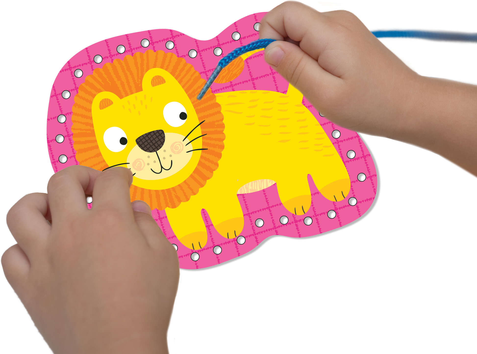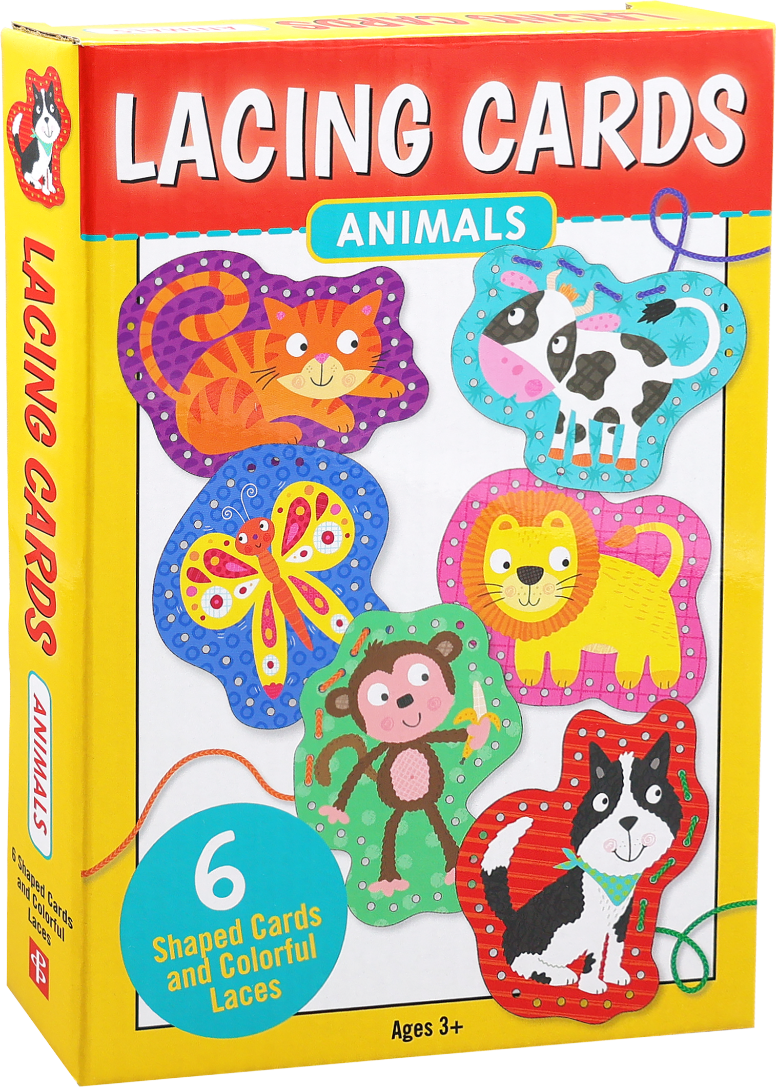 Designed especially for little hands, lacing cards help develop eye-hand coordination, dexterity, and fine motor skills. They provide hours of fun, too! Our lacing kit comes with 6 cards featuring favorite animals, plus matching laces. Cards are made of thick, durable card stock. Large holes are cleanly punched into each card. Sturdy laces fit easily though each hole. Lacing lets kiddos enjoy an easy independent activity that keeps little hands busy! Lacing cards also help children learn to tie shoelaces, and they provide a fun introduction to crafts and sewing. Mess-free and screen-free, too! Ideal for home, school, parties, and family travel. Ages 3 and up.