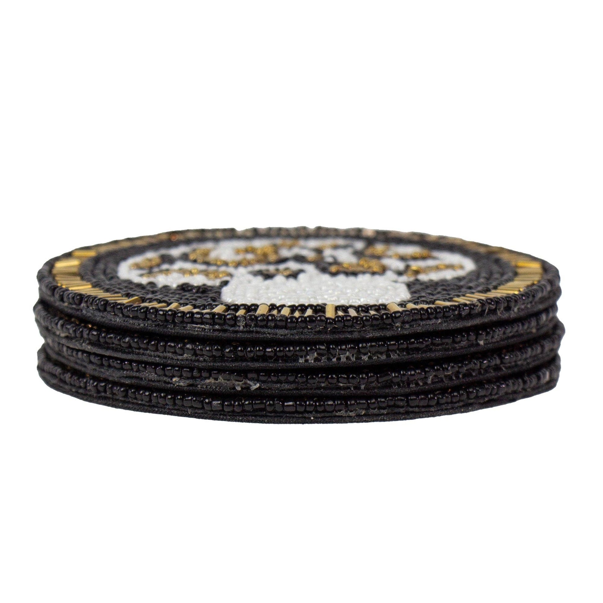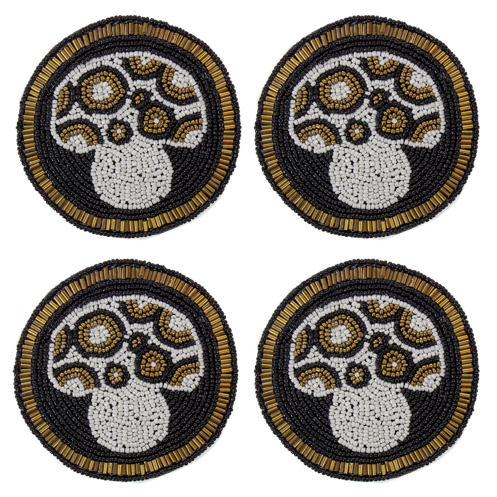 Black Mushroom Glass Beaded Coasters - Set of 4