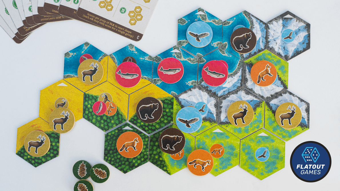 Turns are simple – select a tile/token set and place each into your expanding ecosystem. Earn points by fulfilling wildlife goals and creating the largest habitat corridors.