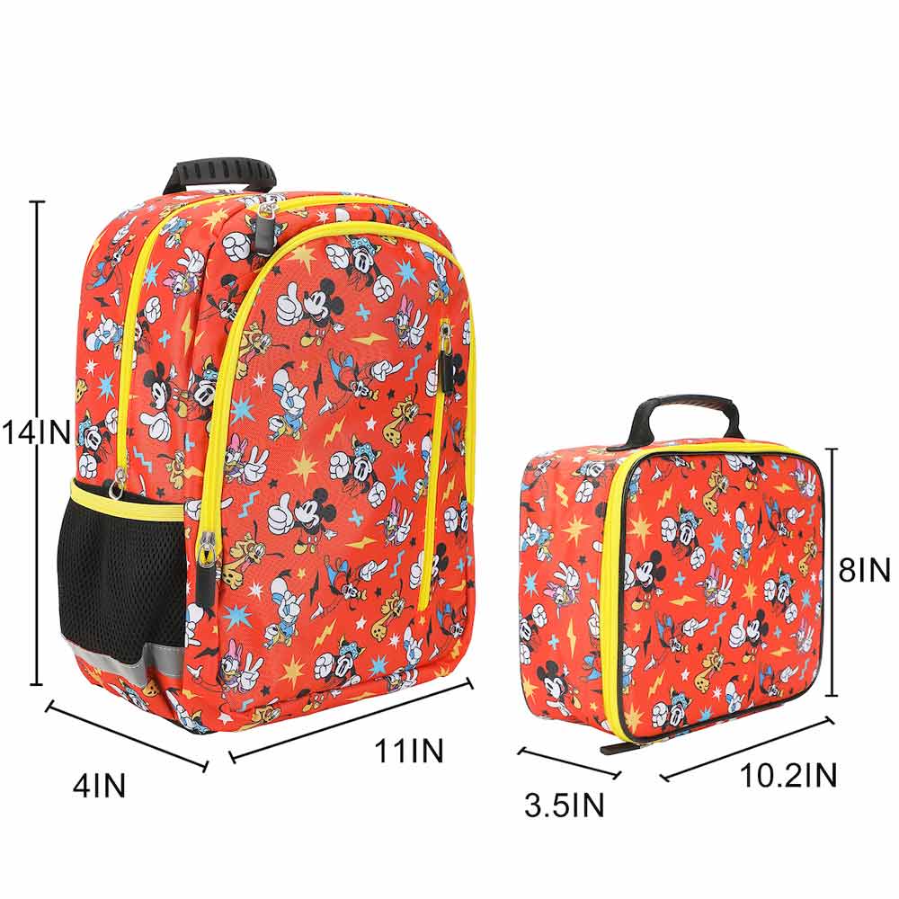 Disney Mickey Mouse Red AOP Print 14-inch Youth Backpack & Insulated Lunch Kit Set