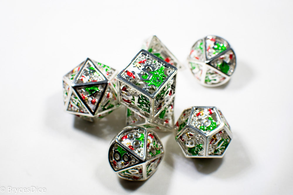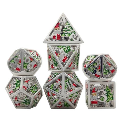 Metal Winter Holiday Santa Dice: 7-Dice Set (Silver)