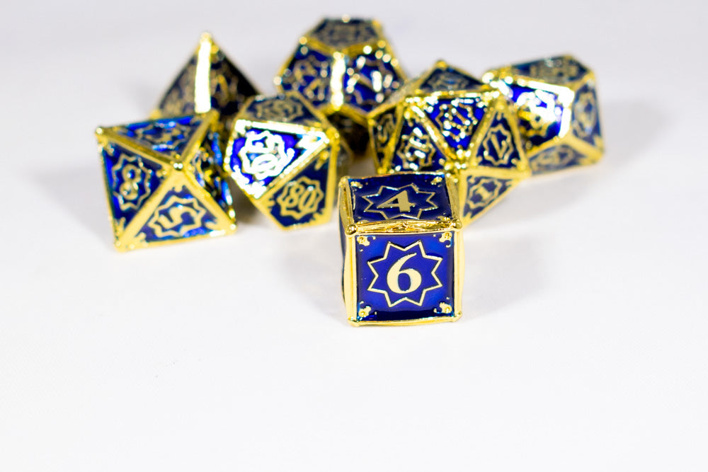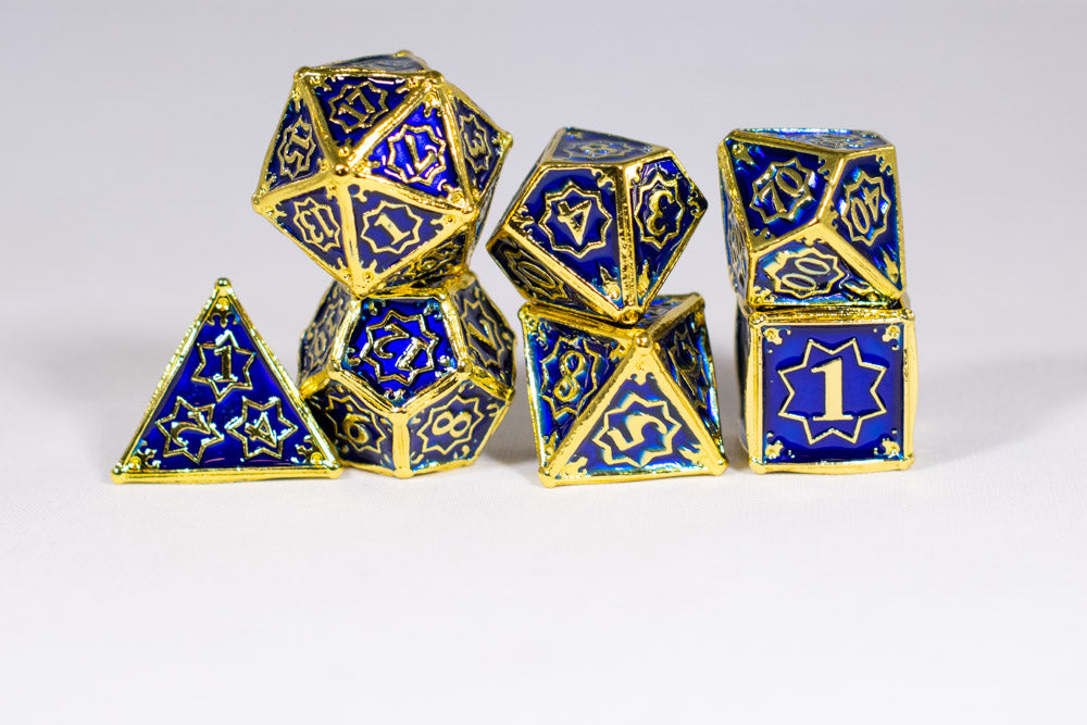 Space King 7-Dice Metal Set Gold w/ Blue Fill {North Star Dice Collection}
