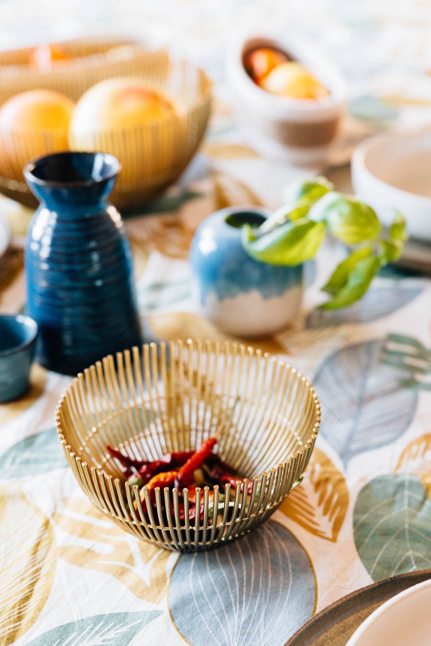 Materials: Brass‒plated iron - Care: Wipe with a damp cloth - Measures: 6"D x 3"H - Pictured with our Sunburst Bowl 10'' (sold separately) - Colors: Brass - Handcrafted in India